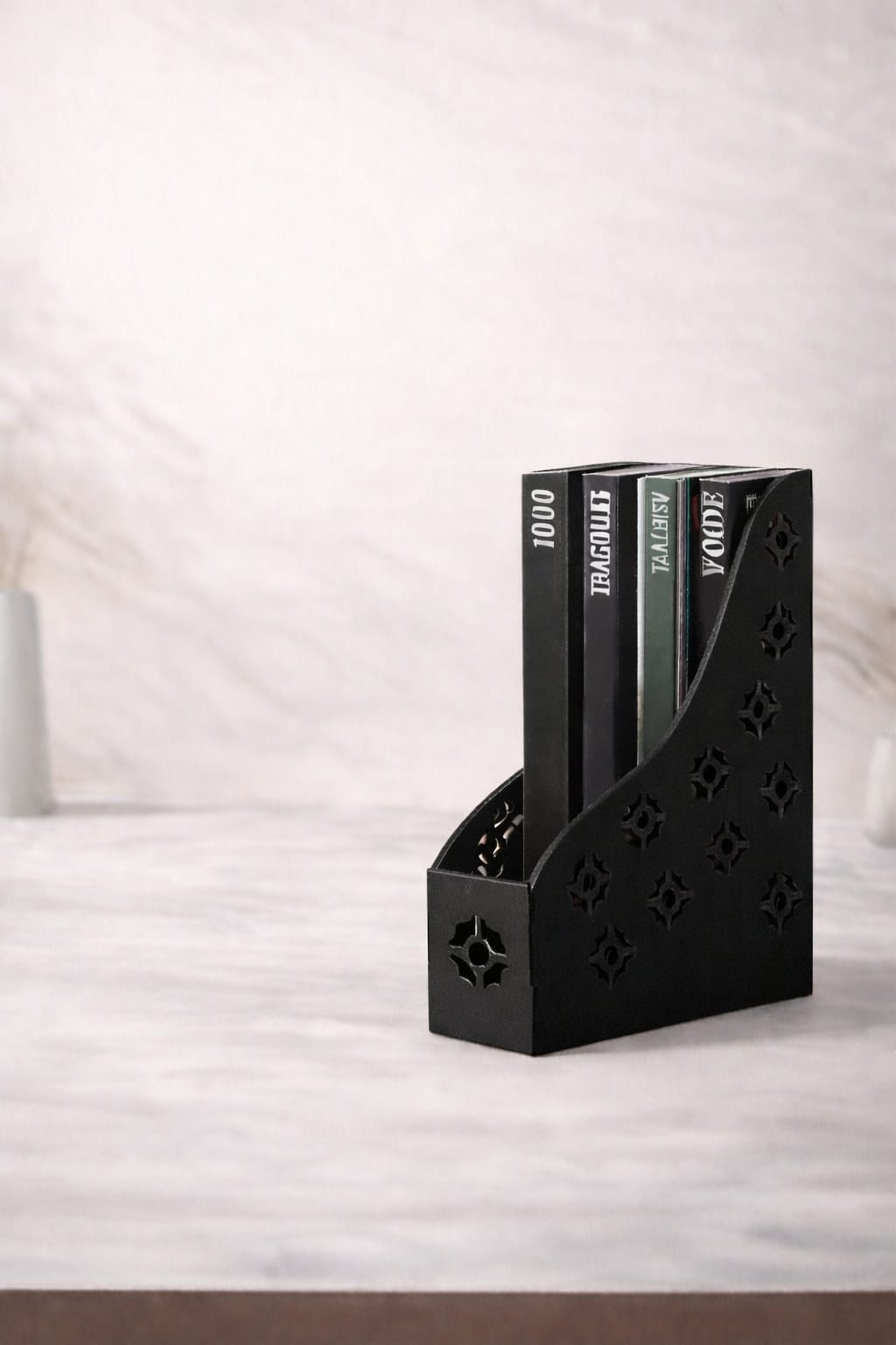 MDF Magazine Holder for Desk | MDF File Organizer Rack for Office, Books, Documents & Magazines | Decorative Laser Cut Desk Organizer for Home & Office