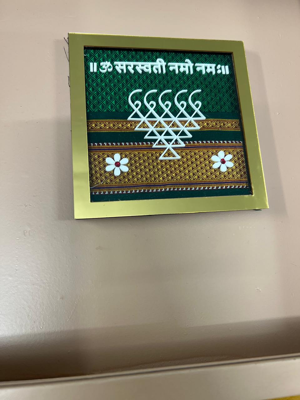 MDF Wall Frame – Handmade with Khun Cloth (Eco-Friendly Decor) This beautiful wall frame is crafted using premium MDF and traditional cloth adds depth, high quality giving it a rich cultural touch. usage :-A thoughtful gift for any one seeking to invoke Saraswati's Blessing for wisdom, learning and artistic pursuits An Ideal gift for Dasara and Diwali !!