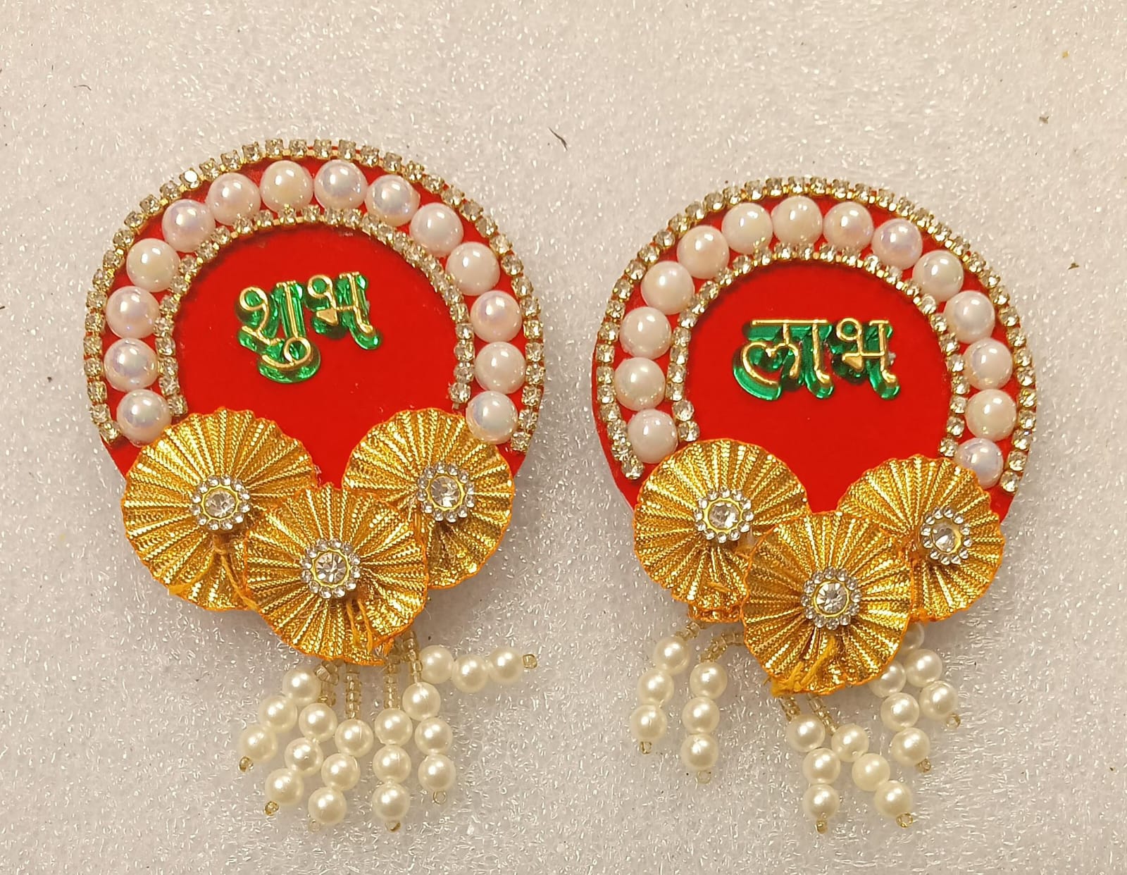 This elegant Shubh Labh set is crafted from premium MDF and beautifully decorated with hand-done moti work. The intricate detailing adds a traditional festive touch, making it perfect for Diwali, pooja rooms, home entrances, and gifting. Eco-friendly materials ensure it is safe, durable, and sustainable. A perfect blend of artistry and tradition for your home décor.